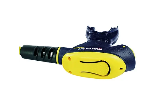 Possède la particularité de s'utiliser à gauche comme à droite, idéal pour la sécurité et l'intervention d'urgence sur un plongeur sans embout ou en panne d'air.